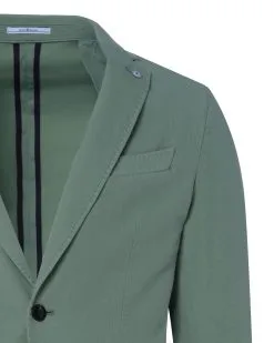 Colbert in prachtige lichtgroene kleur, gemaakt van de beste stoffen door wever Tessuti di Sondrio. Het colbert bestaat uit een mix van katoen en elastaan. Deze dunne, luchtige ble…