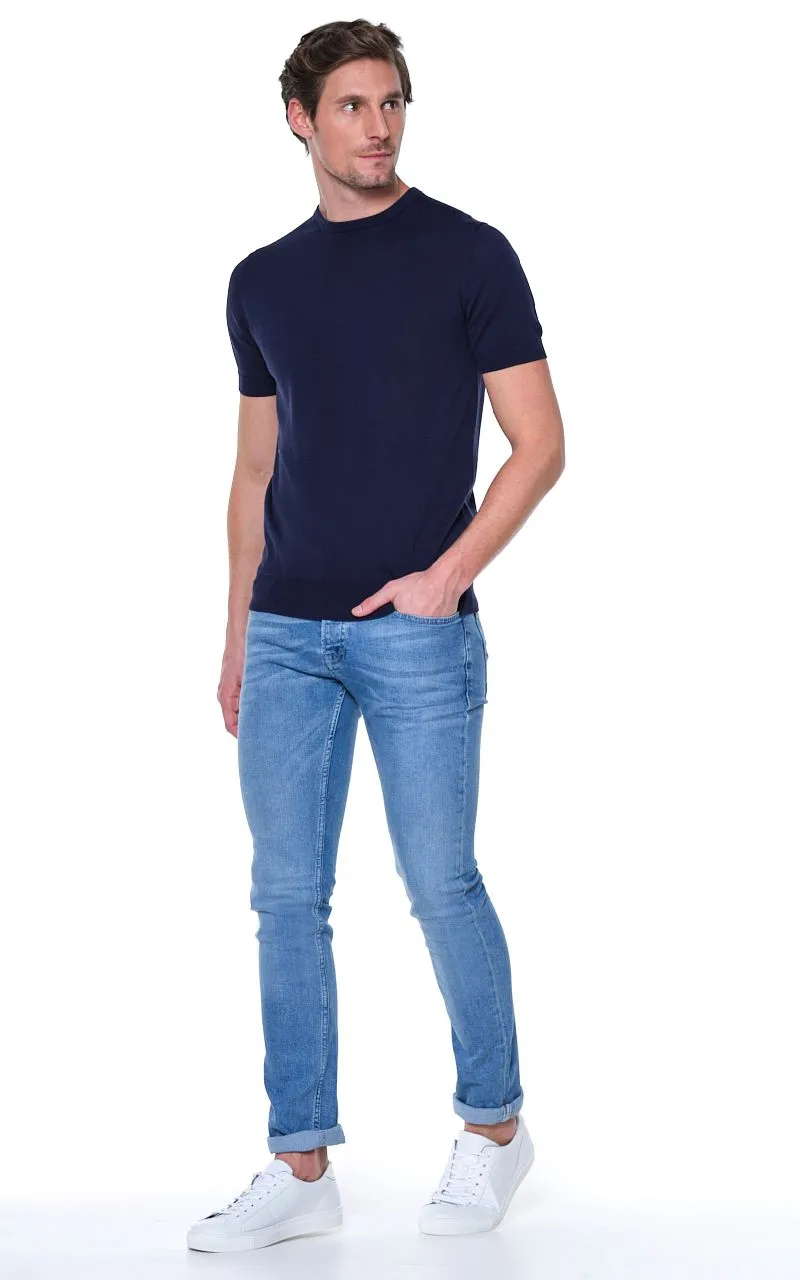 Dean T-shirt met korte mouwen in uni donkerblauwe kleur. Het T-shirt bestaat uit 100% katoen, wat bekend staat om de huidvriendelijke en ademende eigenschappen. Het T-shirt heeft e…