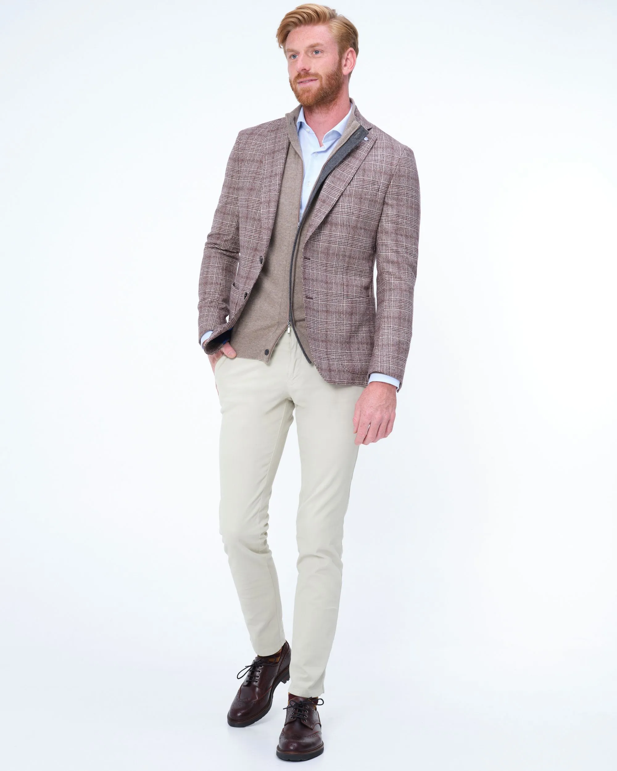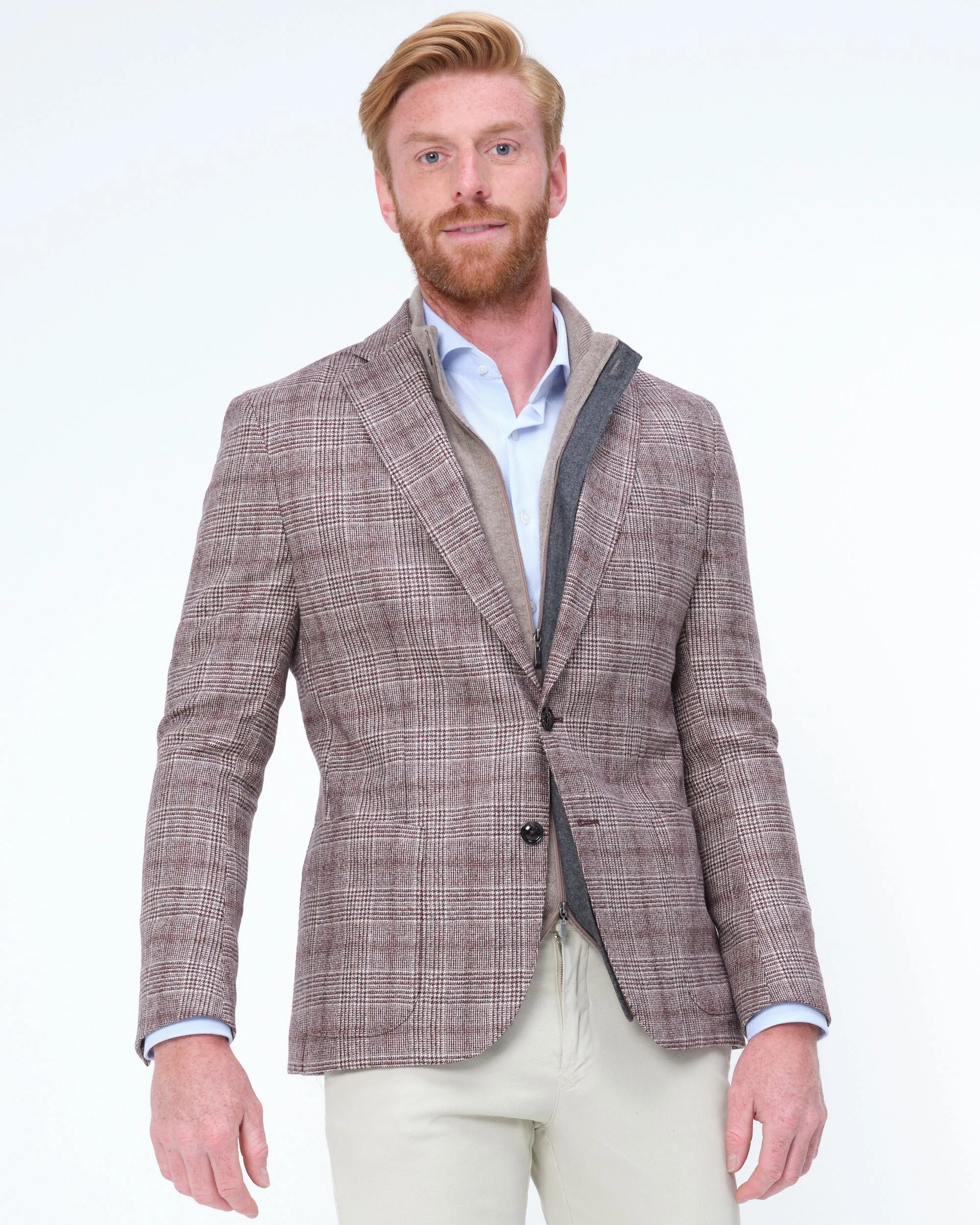 Sportief colbert van Dutch Dandies, het ‘paradepaardje’ van Only for Men. Dit dunne wollen jasje is ongevoerd en draagt daardoor heel fijn, je voelt het bijna niet. De subtiele rui…